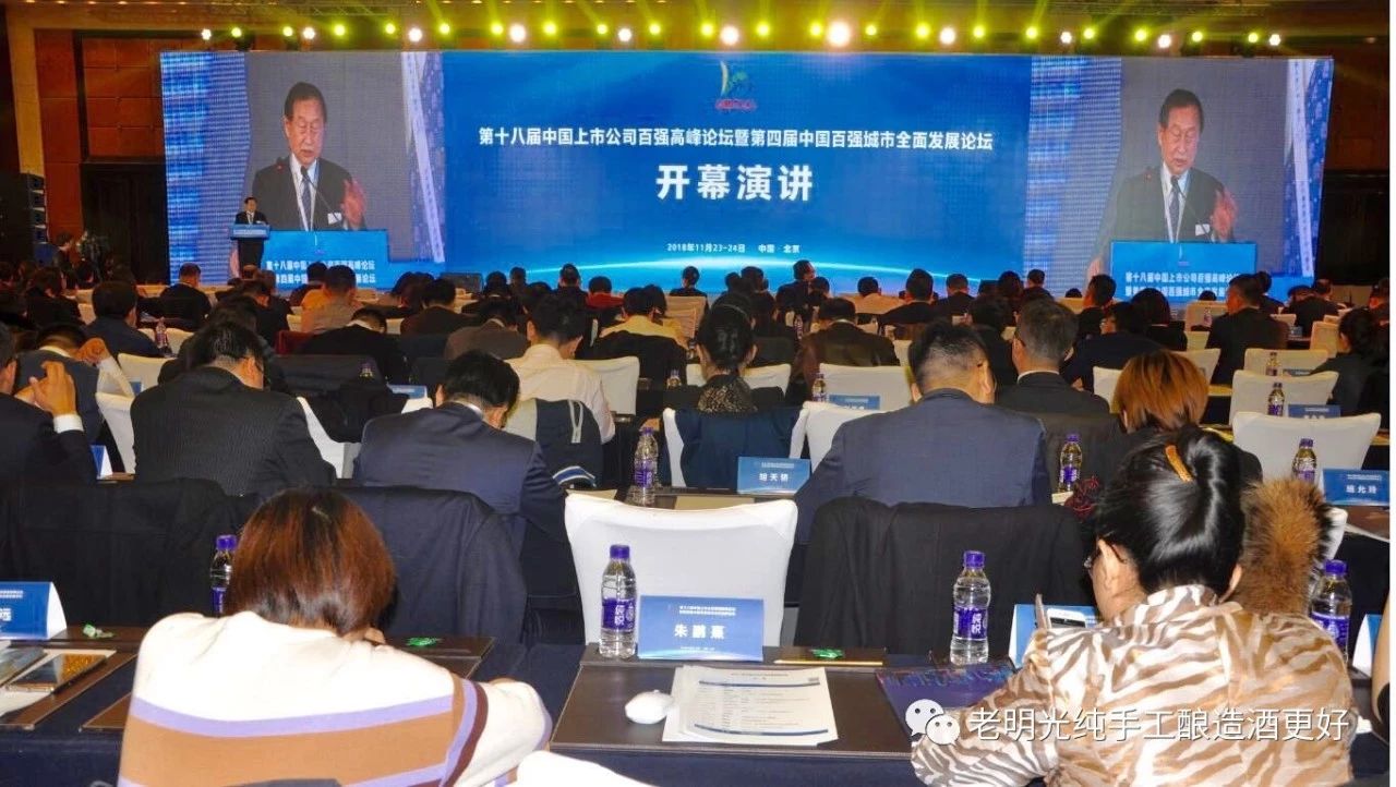 2018年11月23-24日,由中國百強論壇組委會、華頓經濟研究院主辦,中泰集團、錫東新城、蘇州高鐵協辦,濟南、滁州、蘭州市政府戰略支持,安徽明光酒業有限公司等特別贊助的“第十八屆中國上市公司百強高峰論壇暨第四屆中國百強城市全面發展論壇”在北京隆重舉行。