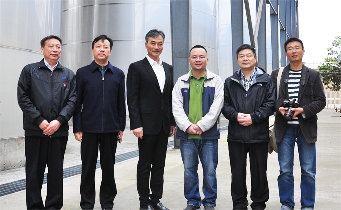 2019年4月27日,江蘇大學智慧城市與特色小城鎮研究院副院長顧洪斌,中國市長協會小城市(鎮)專委會副主任、《中國市長》雜志執行主編、《解碼鄉村振興》主編蔣晨明,鳳凰網北京站編導唐駁虎等大咖一行7人,在明光酒業總經理鞏建、紀委書記閆興淮、全國勞模、工會主席趙玉龍等陪同下參觀考察明光酒業。