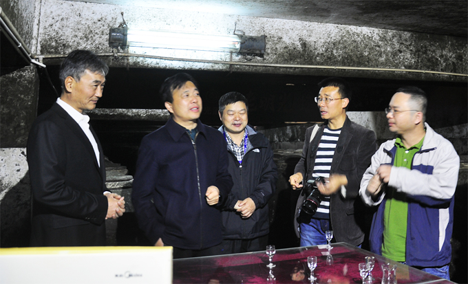 顧院長一行先后參觀了明光酒業釀酒基地,老明光、明綠液地下壇庫區、不銹鋼罐庫區、釀酒車間操作現場,考察團一行在釀酒基地和地下酒庫品嘗了老明光和明綠液基酒。