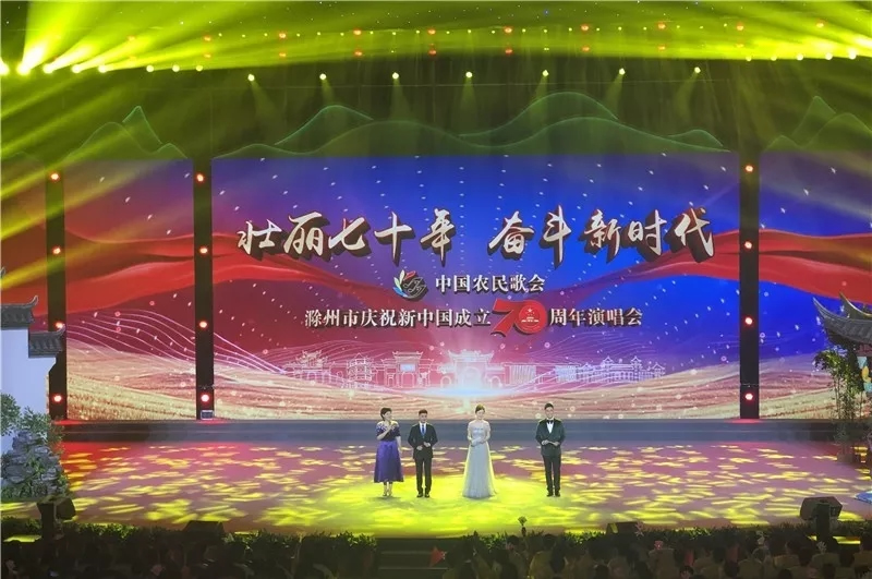 “豐收與皖東攜手,盛會與滁州相約”,中國農民歌會及滁州市慶祝新中國成立70周年演唱會在滁州市激情唱響,來自全國各地的農民歌手用質樸的歌聲,抒發著濃濃的鄉土情懷,為新中國成立70周年獻禮,數十萬當地群眾在現場或通過網絡直播觀看了這場視聽盛宴。