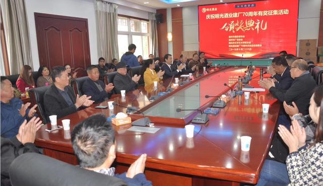 2019年10月26日,由滁州市攝影家協(xié)會、滁州市廣告協(xié)會、明光市文聯(lián)主辦,由明光市作家協(xié)會、明光市攝影家協(xié)會、明光酒業(yè)承辦的,明光酒業(yè)建廠70周年六項有獎征集活動頒獎典禮,在明酒水上會議隆重舉行。儀式由黨委副書記龐宗生主持。