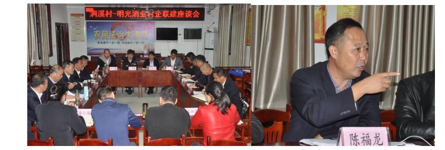 五、召開(kāi)聯(lián)合支部聯(lián)誼會(huì),共同探討村企聯(lián)建對(duì)策。 明光市人大副主任、澗溪村扶貧工作隊(duì)隊(duì)長(zhǎng)陳福龍主持座談會(huì)