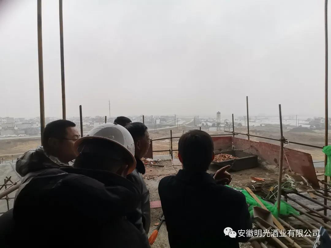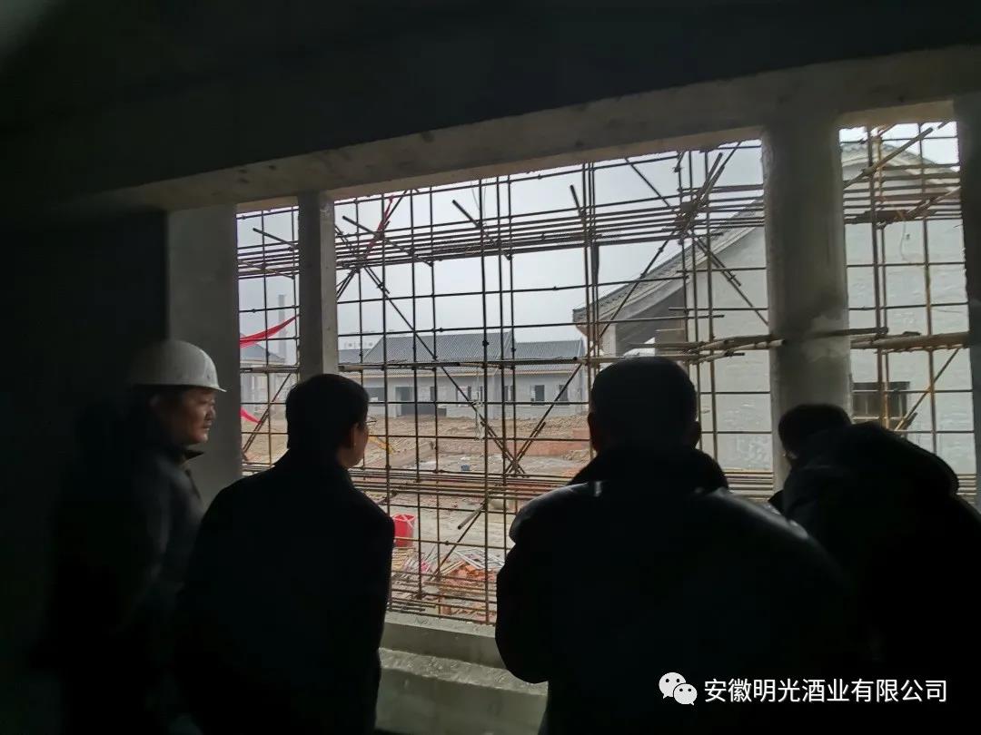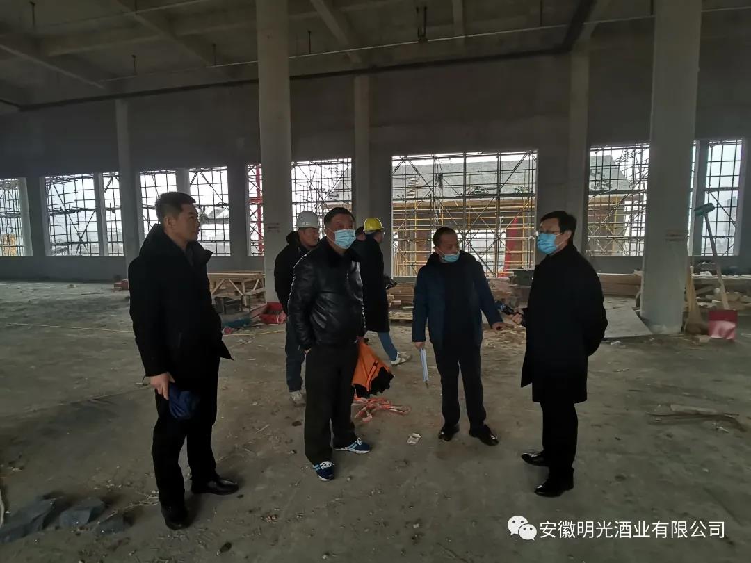 1月22日下午,安徽明光酒業有限公司董事長、總經理張博在行政經理龐宗生、資產管理部部長李志軍等陪同下,到在建中的明酒博物館(明光市人防物資儲備庫項目工程)實地查看進度了解情況,明光市重點工程建設管理局業主唐潤州主任、承建單位安徽傳辰建筑有限公司項目經理楊福明介紹了施工進度和有關情況。