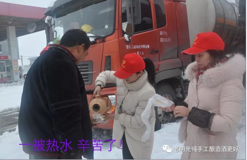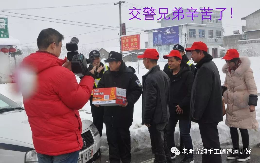 鏡頭五:志愿者慰問交警保暢通。明光酒業(yè)志愿者服務(wù)隊,帶著快餐面、開水、熱雞蛋沿路尋找保暢通的交警勇士們和滯留在路途中的駕駛員,送上暖暖熱水和明酒的一片真情。