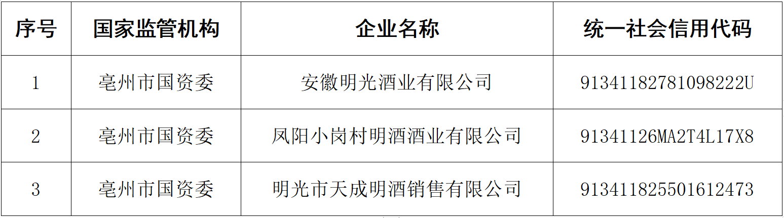 依據(jù)相關要求,現(xiàn)將明光酒業(yè)出資企業(yè)名單進行公示(截至2023.08.30),如有變化,將及時更新。具體如下:
