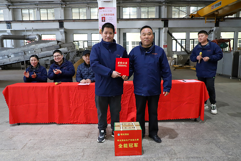 大賽由工會組織,閆興淮主席擔任主裁判,比賽持續三天,共有152名員工參與,釀酒二車間朱澤翔榮獲釀酒“全能冠軍”。