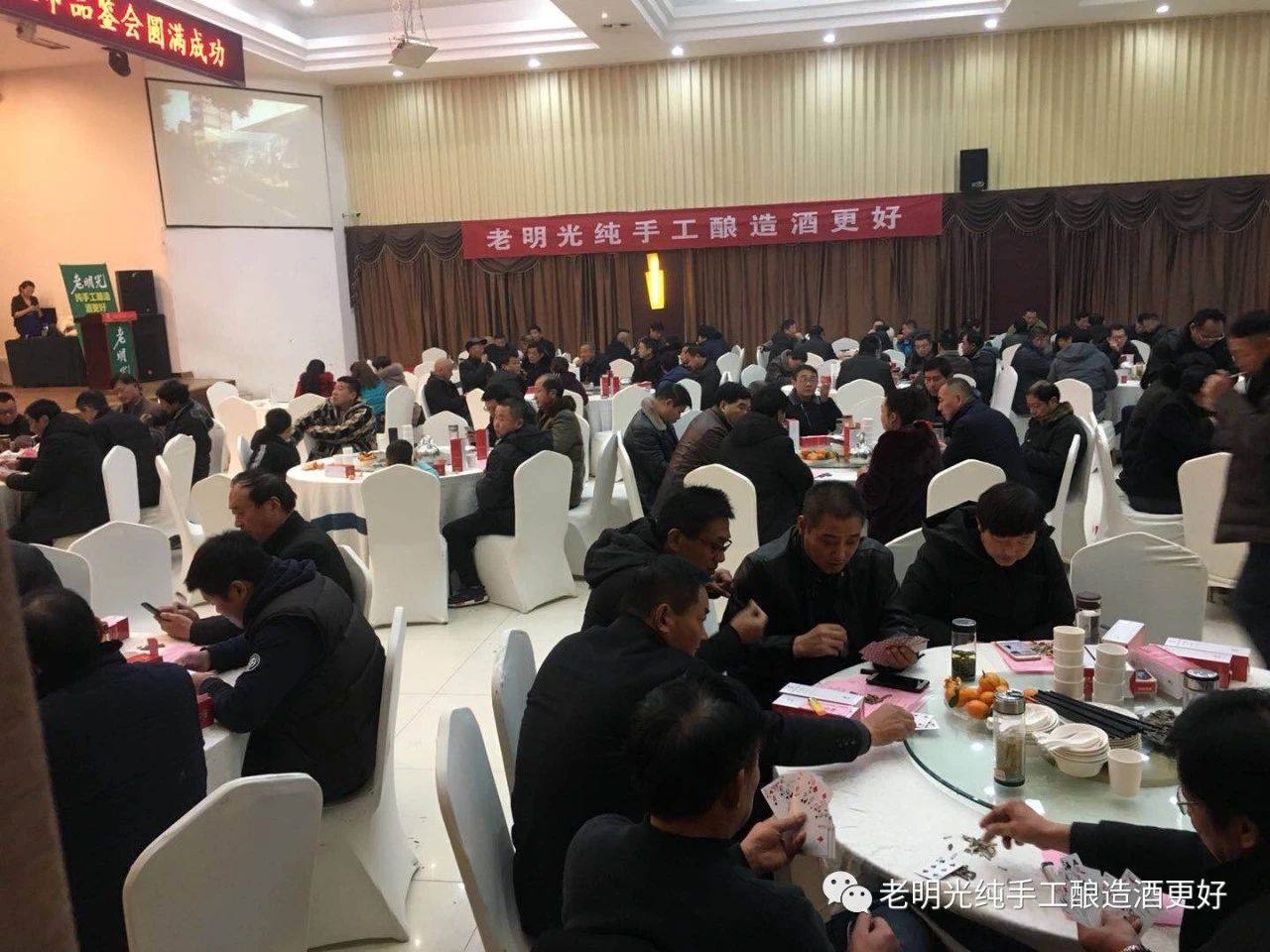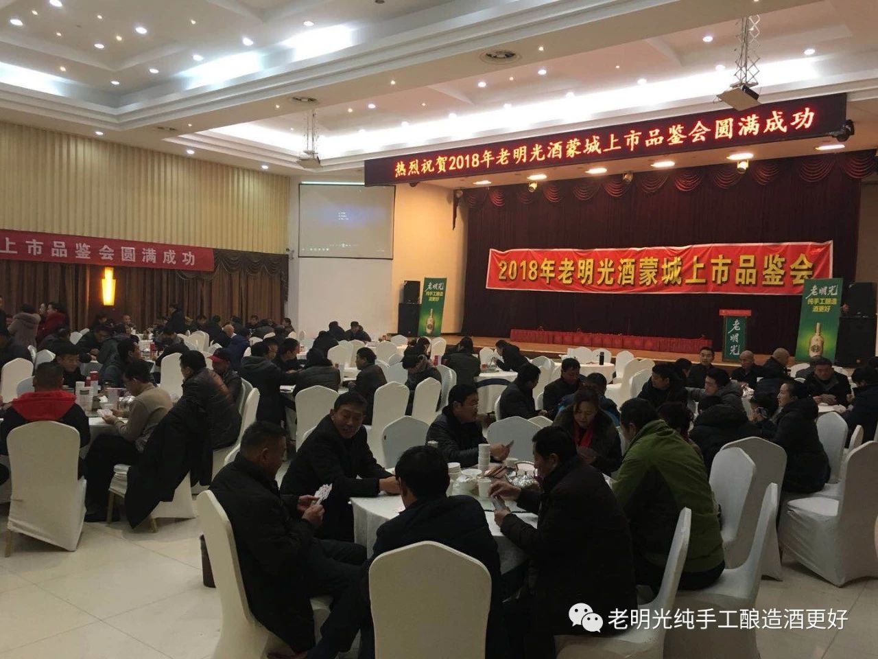 2018年12月16日,2018年老明光蒙城上市發布及品鑒會在蒙城鴻業國際大酒店如期舉行,明光酒業銷售公司黨支部書記錢軍、明酒淮亳辦事處主任宋樹金、蒙城富華商貿經理劉振峰及蒙城相關部門領導和鄉鎮老明光經銷商代表160多人參加了品鑒會。