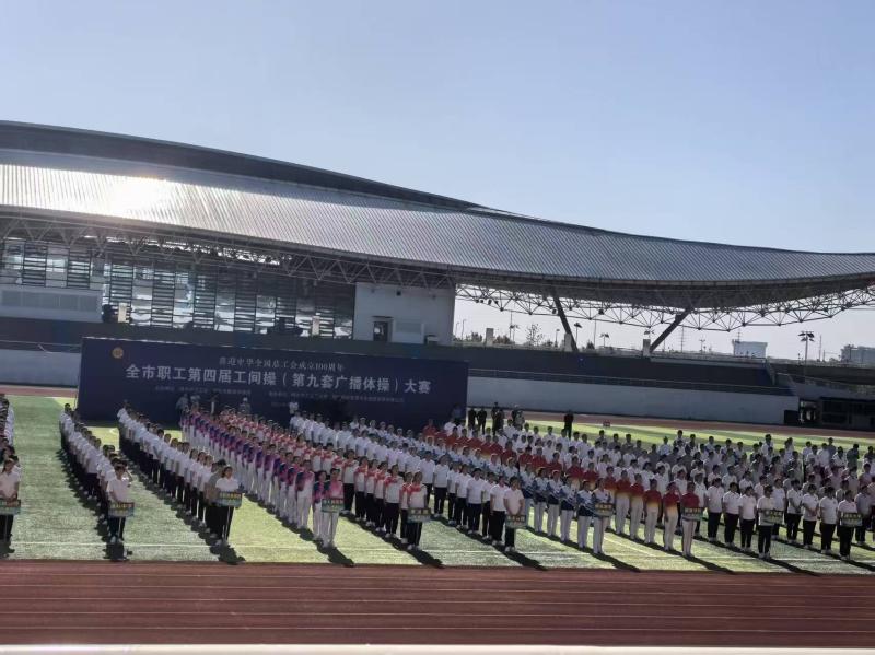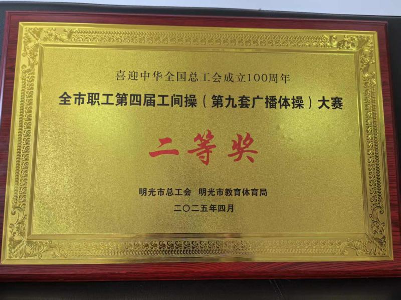 4月26日,由明光市總工會、市教育體育局主辦的喜迎中華全國總工會成立100周年全市職工第四屆工間操(第九套廣播體操)大賽在市新體育中心進行,39支代表隊近千名運動員同臺競技,明光酒業代表隊榮獲二等獎,位列第六。