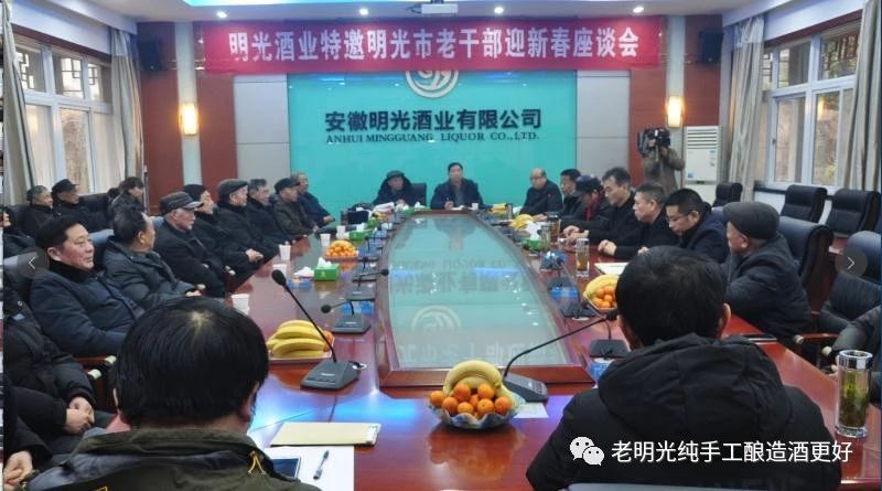 2019年1月6日下午,明光酒業(yè)召開老干部迎新春座談會。明光市副處級以上老干部、明酒退休老領(lǐng)導(dǎo)、明光市老干部局、明酒班子成員及明酒特聘酒文化博物館籌建組等50余人參加了會議,座談會由明酒黨委副書記龐宗生主持。