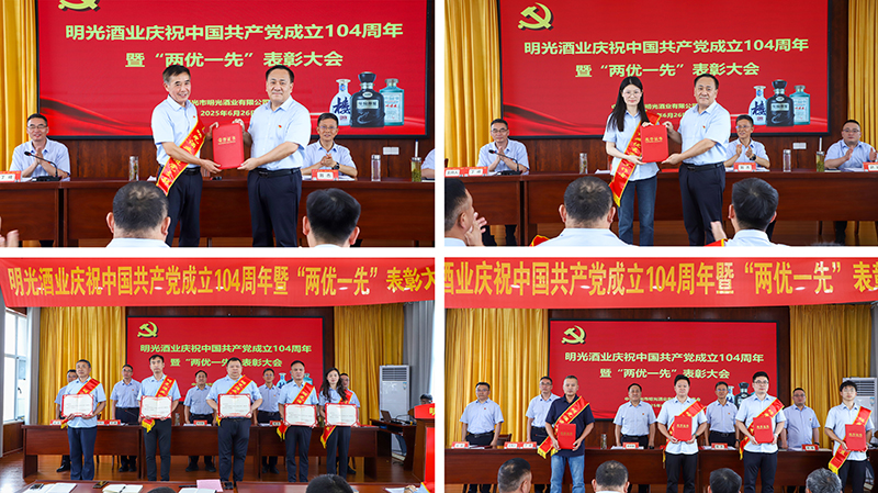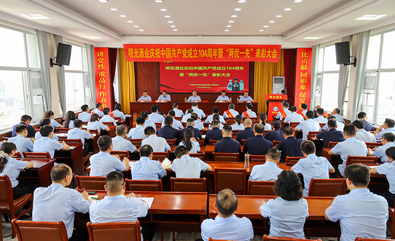 6月26日上午,明光酒業慶祝中國共產黨成立104周年暨“兩優一先”表彰大會在五樓會議室召開。公司黨委書記、董事長華興安及公司黨委班子成員出席會議,黨委委員、總經理助理丁峰主持會議。